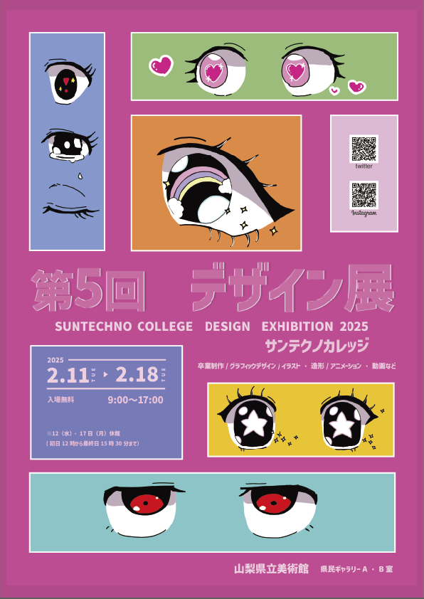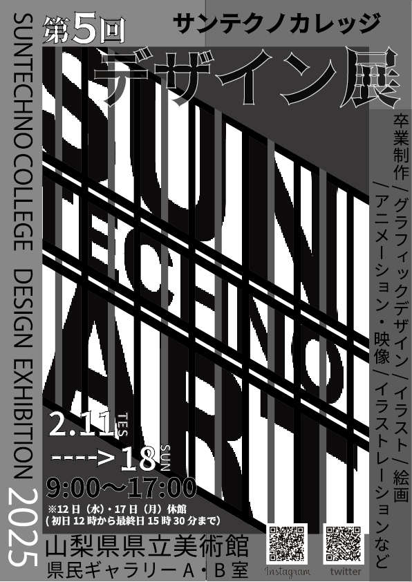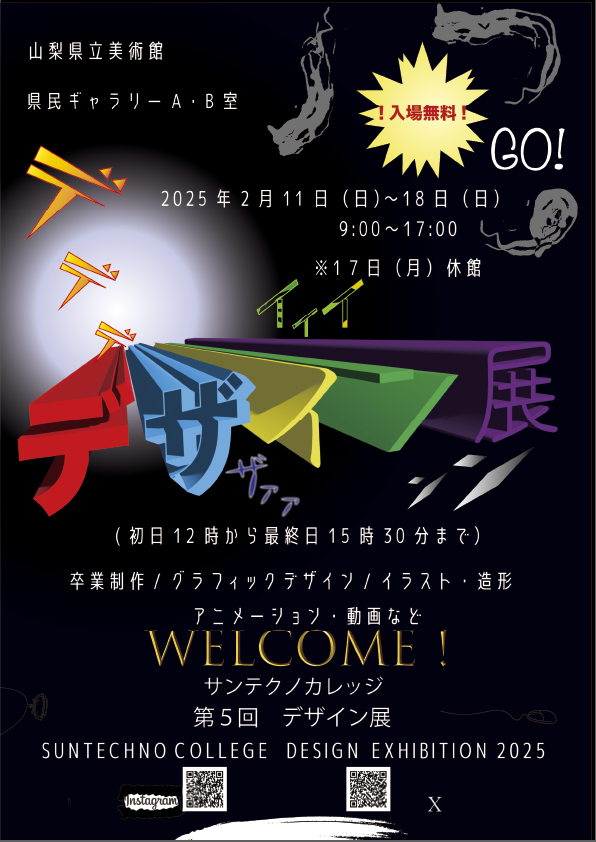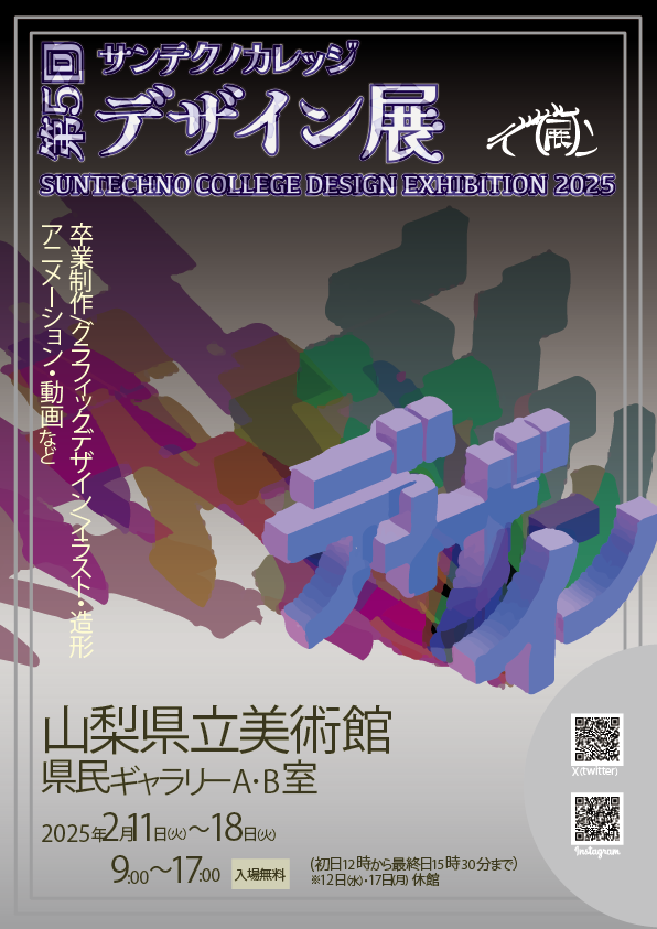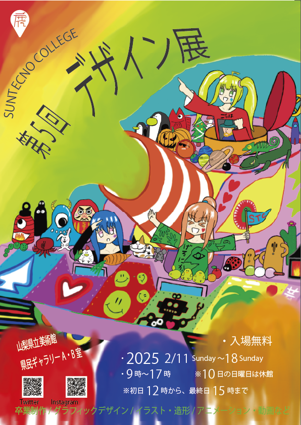 サンテクノカレッジの学生が制作しました作品の展示を行います。1年間かけて制作し、1年生は初めての作品展、2年生は卒業制作になります。また、サークルで作成した作品や、プロジェクトで作成した成果物も展示しております。