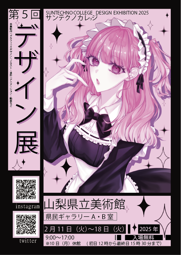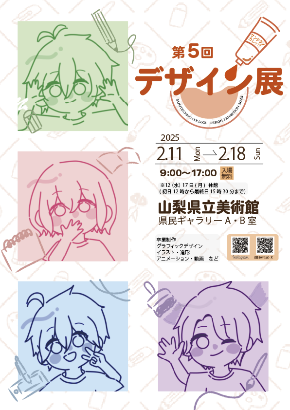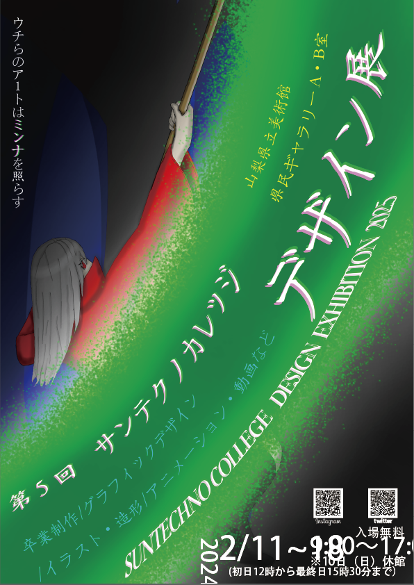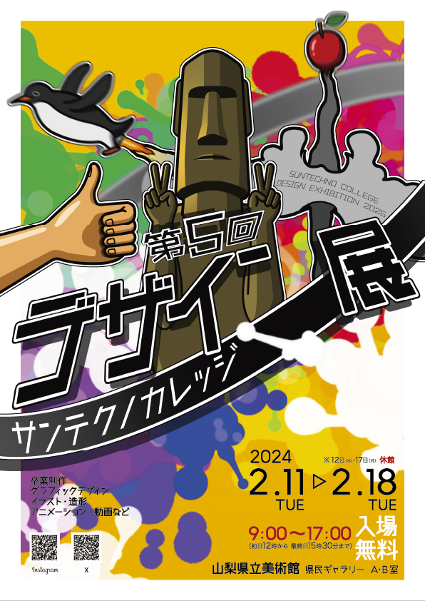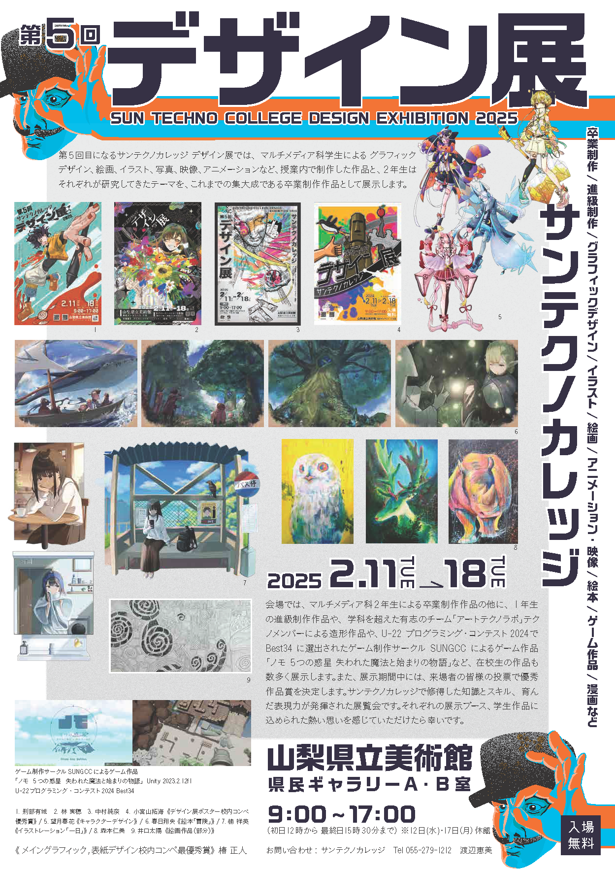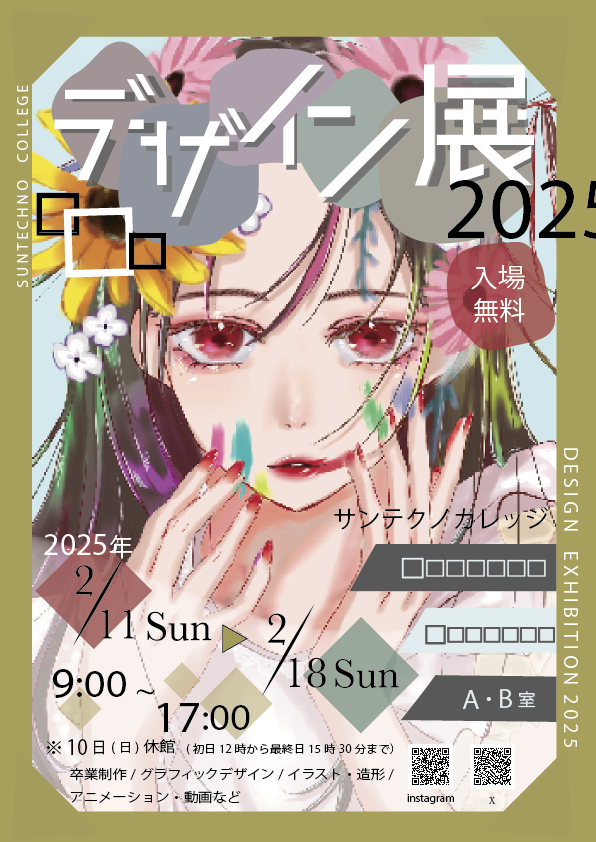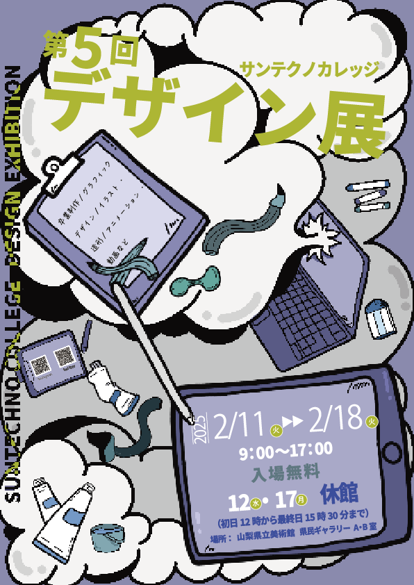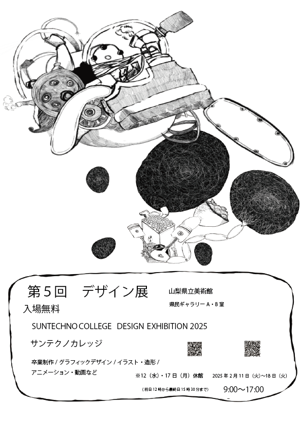 サンテクノカレッジの学生が制作しました作品の展示を行います。1年間かけて制作し、1年生は初めての作品展、2年生は卒業制作になります。また、サークルで作成した作品や、プロジェクトで作成した成果物も展示しております。